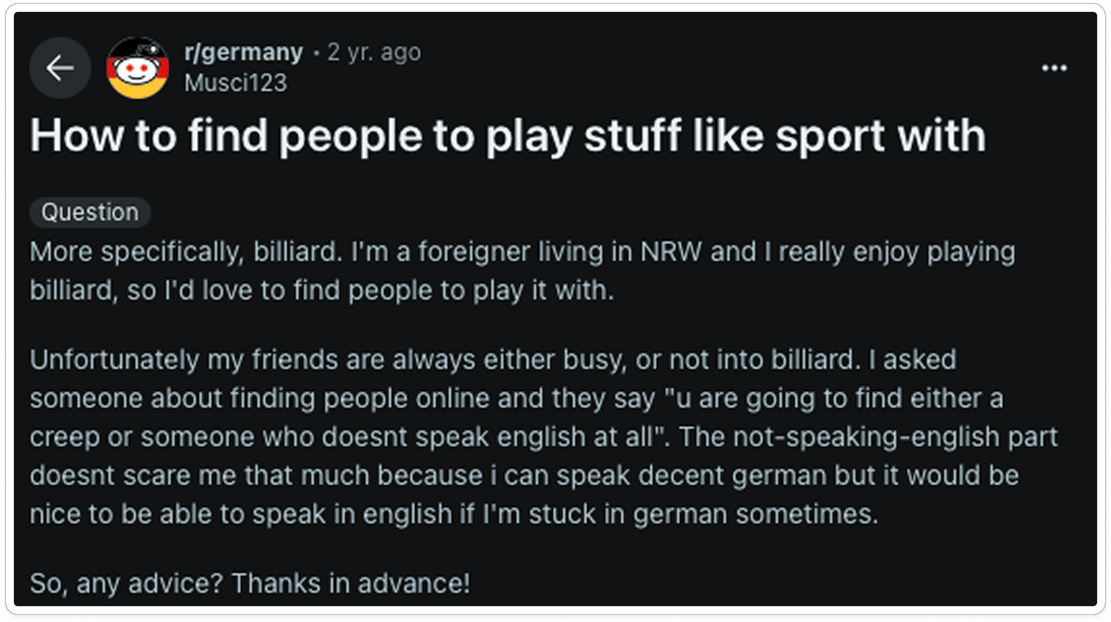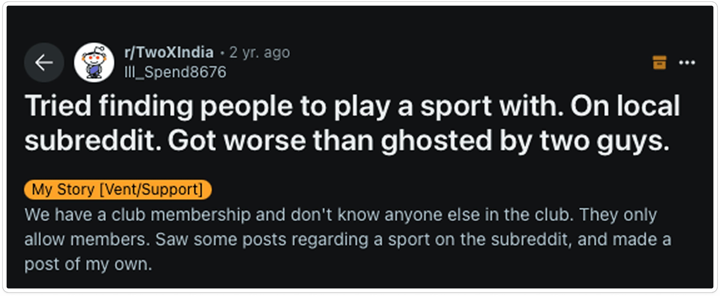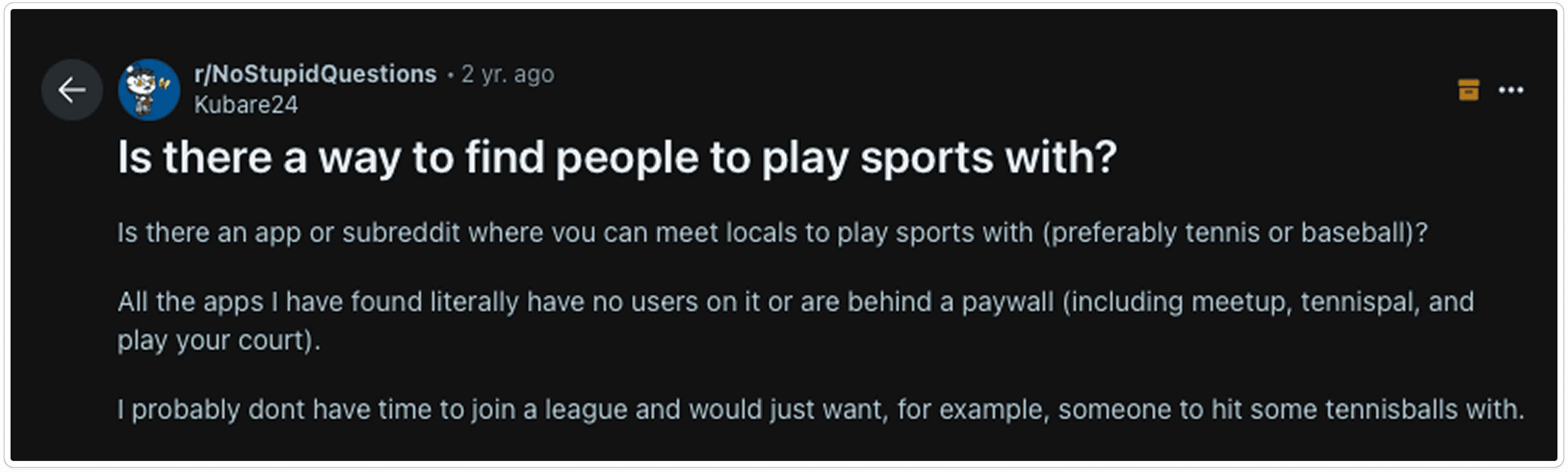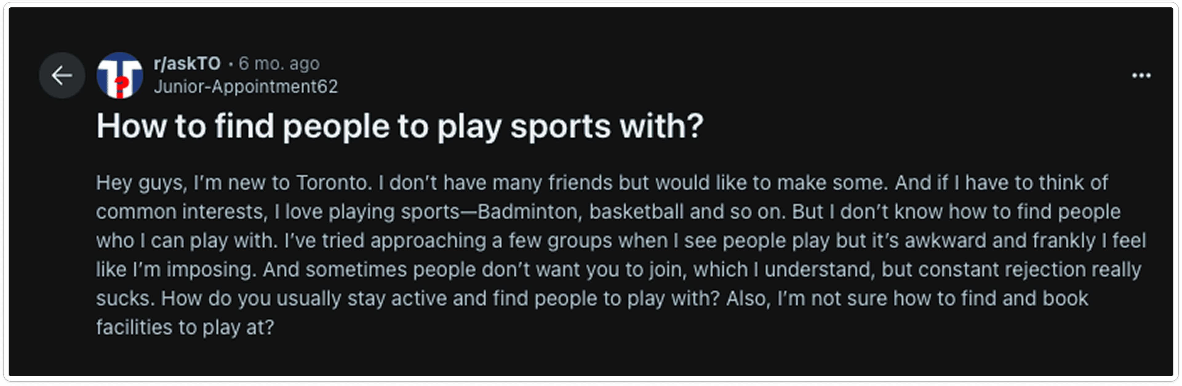 People typically don't where to even ask people to play sports with them.