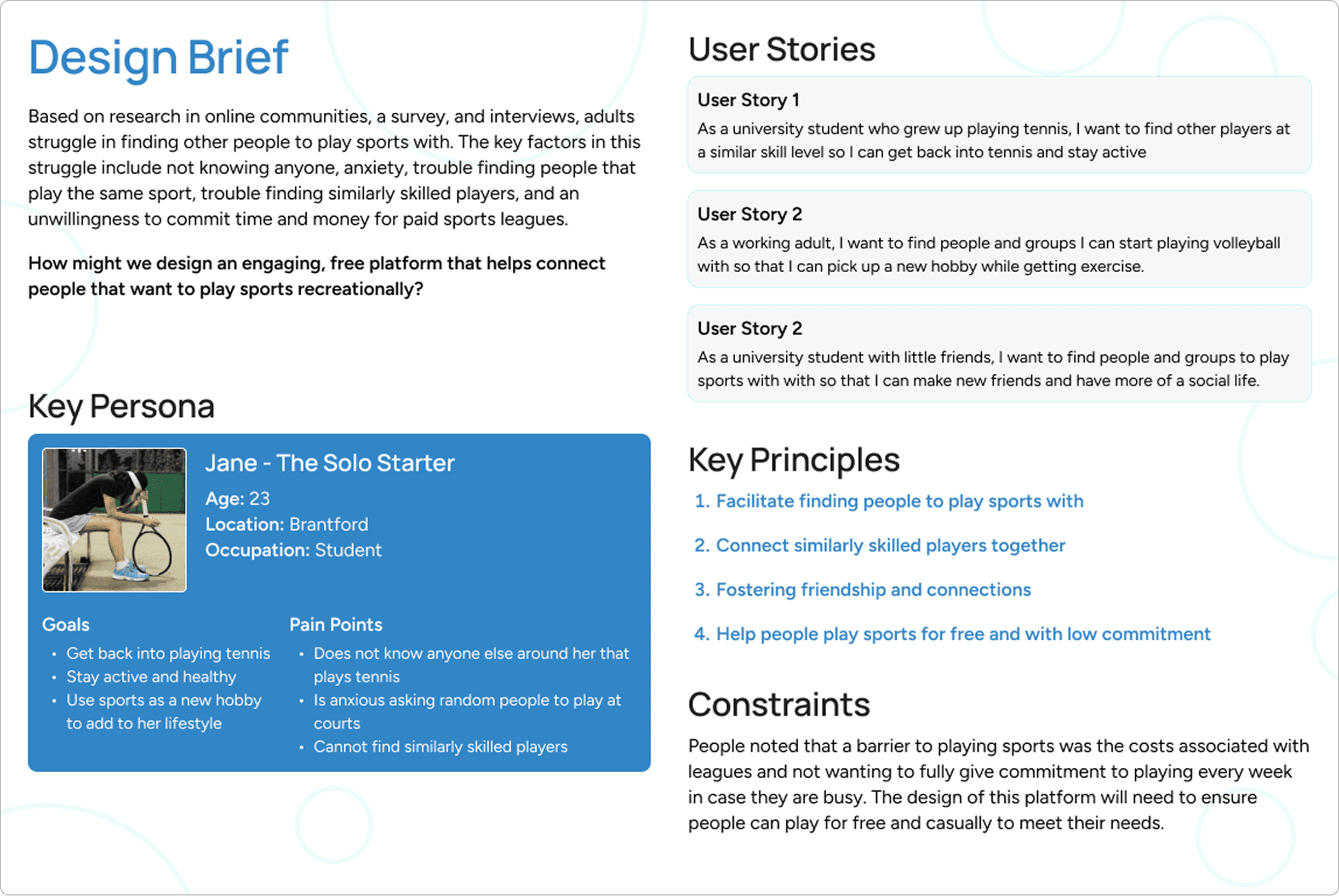 Instead of having to go up to random people and ask them to play, this platform takes away that social anxiety as everyone on the platform has the same goal: to play sports recreationally.